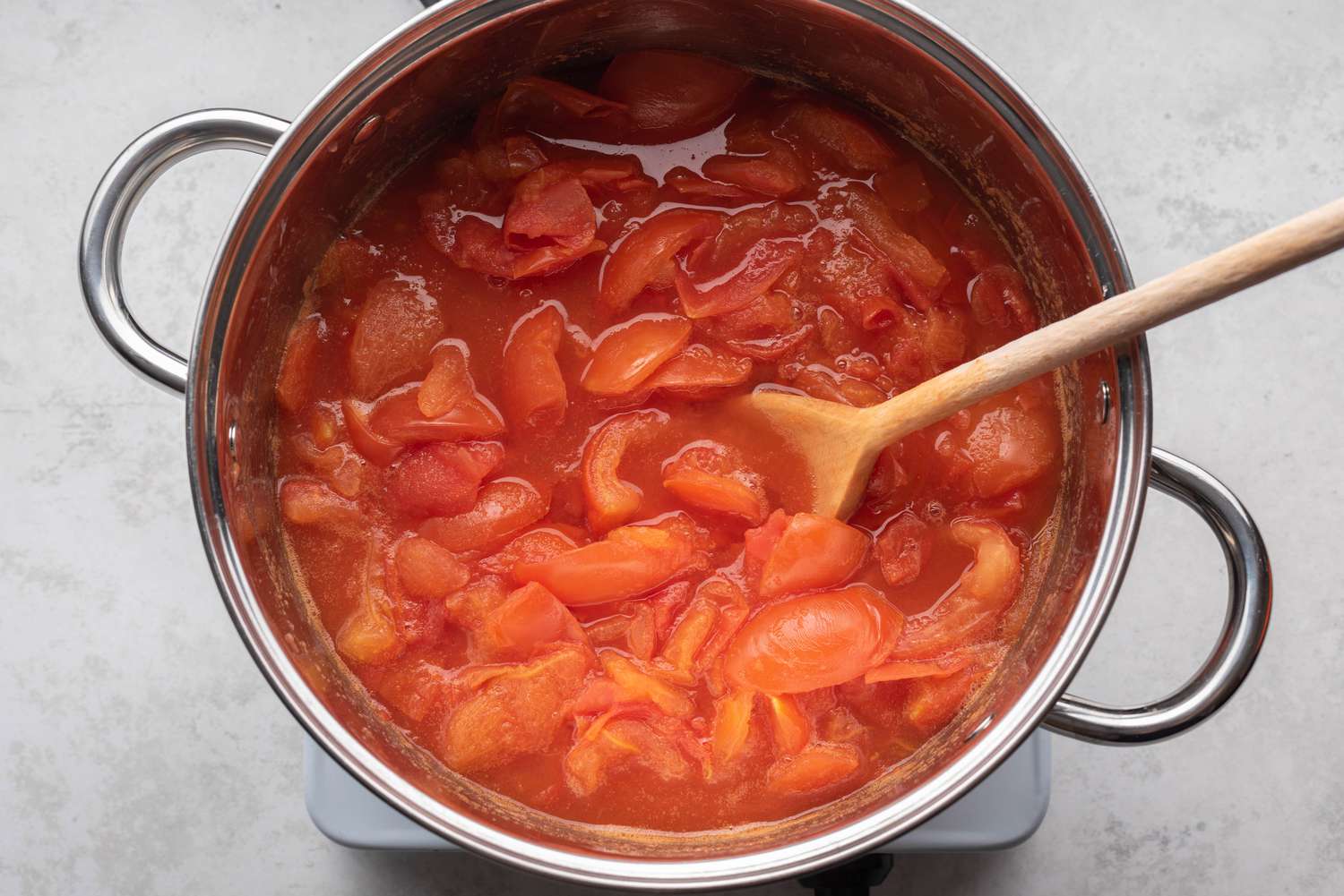 - Se lasă sucul de roșii pe aragaz până la scăderea lui la jumătate.