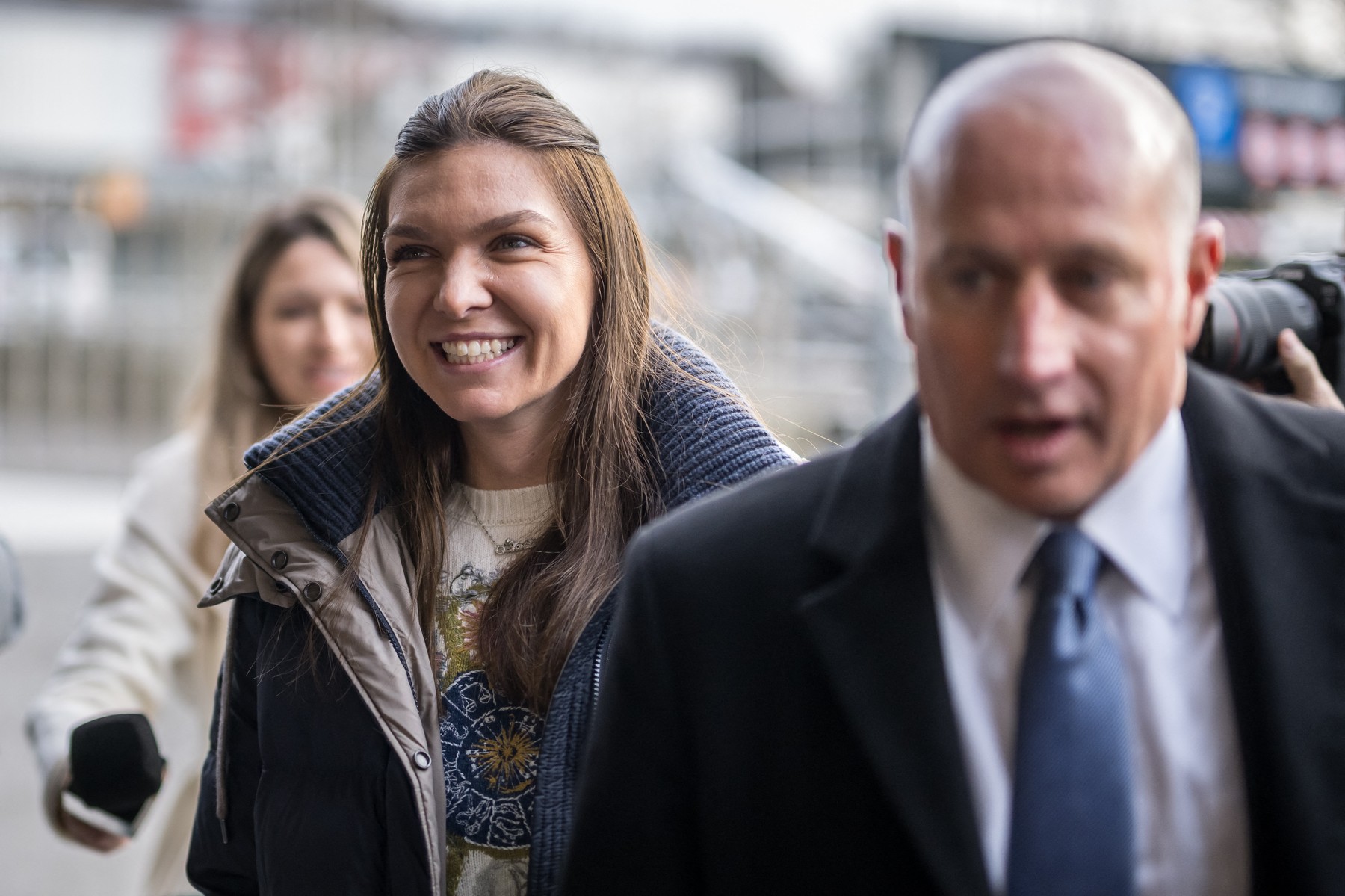 Former world number one tennis player Romania's Simona Halep (C) and her lawyer Howard Jacobs (R) arrive at the Court of Arbitration for Sport in Lausanne on February 7, 2024, for her appeal against a four-year doping ban. The two-time Grand Slam singles champion tested positive for roxadustat after the US Open in 2022 and was charged with a separate second anti-doping breach last year relating to irregularities in her athlete biological passport.,Image: 844197414, License: Rights-managed, Restrictions: , Model Release: no, Credit line: Fabrice COFFRINI / AFP / Profimedia