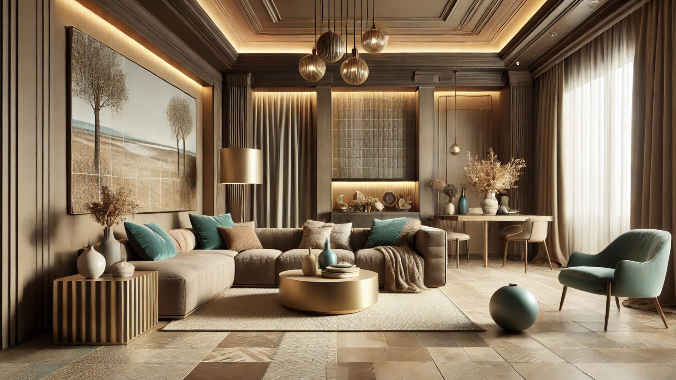 - Natură caldă: Combină Mocha Mousse cu tonuri de bej și accente de verde salvie. Această paletă este ideală pentru camerele de zi sau spațiile de lectură, oferind liniște și armonie.