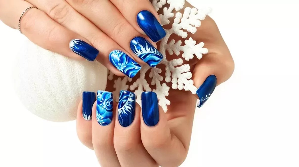 Idei de modele pentru unghii de Crăciun albastre. Inspiră-te de aici, dacă îți place această culoare