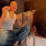 Vedeta îl surprinde adesea în fotografii și filmulețe pe care le postează în mediul online, fără însă a-i arăta chipul. De curând, ea s-a filmat în timp ce făcea baloane de săpun, iar băiețelul ei le spărgea, iar imaginile au topit internetul. Sasha stă deja singur în fund și este foarte atent la mama lui.