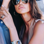 Fotomodelul internațional a purtat o rochie de culoare bej, lungă, crăpată pe picior, cu un cordon în talie. Ținuta i-a pus în valoare silueta, dar și picioarele lungi și tonifiate. A asortat totul cu o pereche de sandale cu toc cui, nude, și o brățară masivă argintie cu negru.