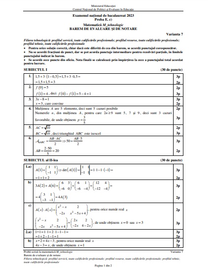 Rezolvare subiecte BAC 2023 sesiunea de toamnă la matematică. Baremul de corectare
