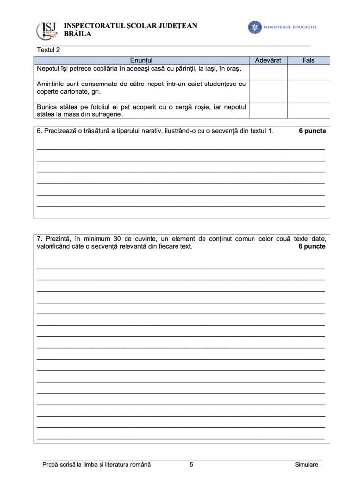 Simulări Evaluarea Națională 2024. Modele de subiecte la limba română