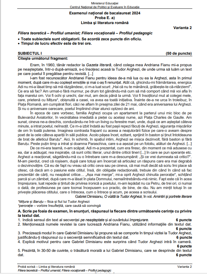 Subiecte BAC 2024 la Limba Română. Ce au avut de rezolvat candidații, cerințe și barem de corectare