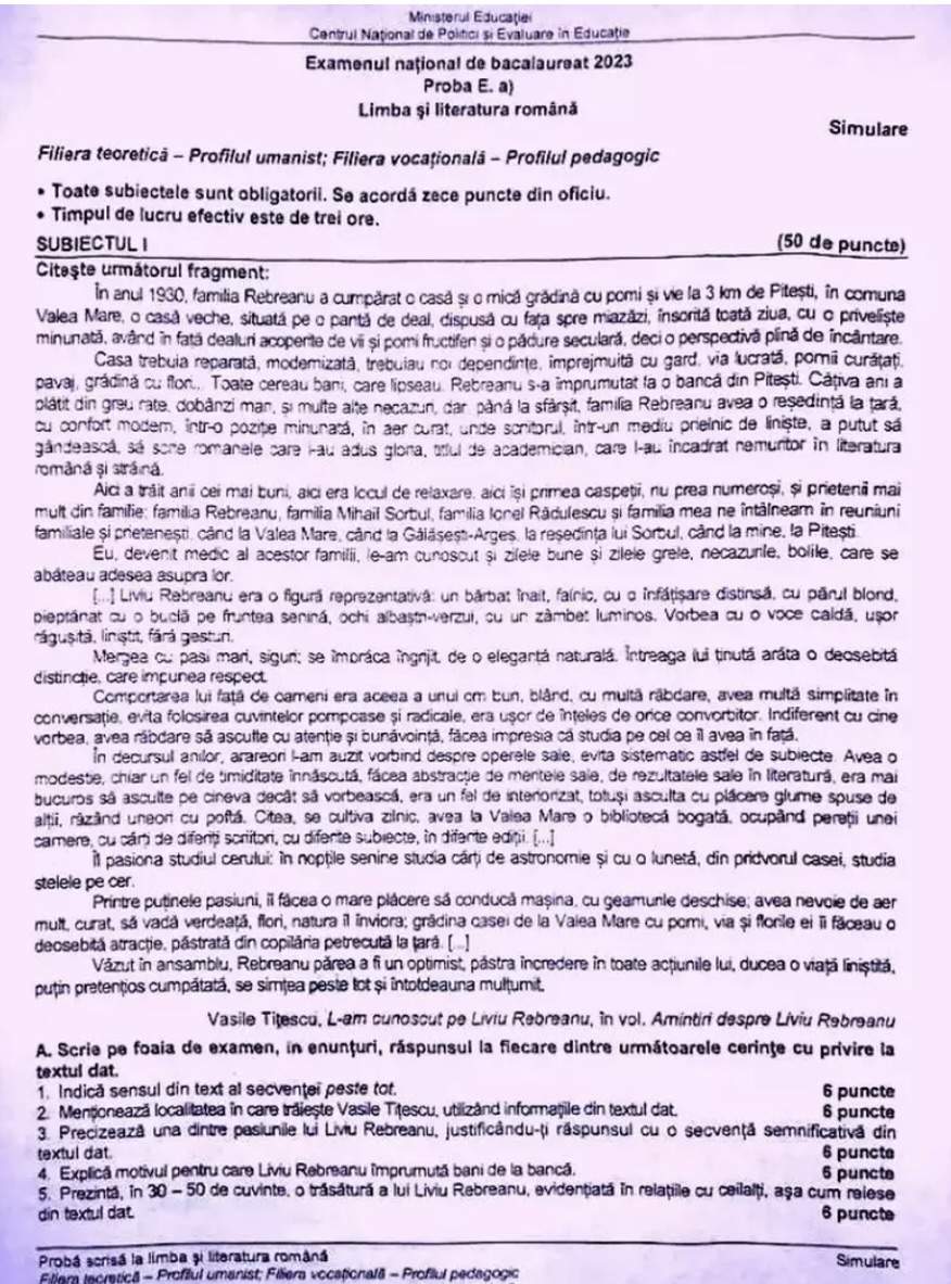 Subiecte simulare BAC 2024 la limba română. Ce au avut de rezolvat elevii de la uman și real
